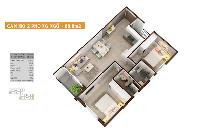 – Căn hộ 68.8m2: Căn hộ nhóm này là 3 căn góc. Căn hộ được thiết kế 2 phòng ngủ, 2 vệ sinh và phòng khách, bếp.