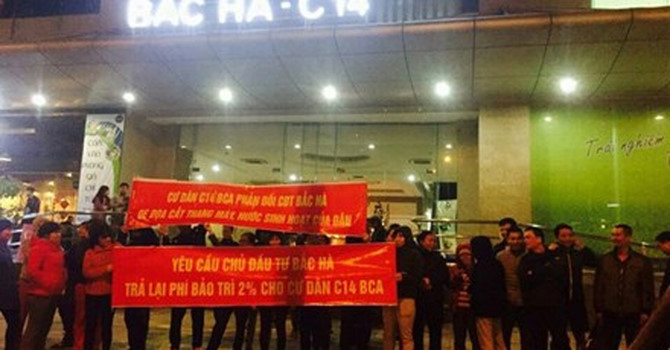 Bà Đặng Kim Ngân, Trưởng Ban quản trị (BQT) tòa nhà C14 Bắc Hà nêu thắc mắc: CĐT chưa chịu bàn giao phí bảo trì gồm 2% cho BQT. Vì vậy, một bộ phận cư dân trong đó có bà, không đóng phí dịch vụ nhiều tháng nay. Theo bà Ngân, cư dân rất bức xúc và sẽ đấu tranh bằng cách căng băng rôn, biểu tình.